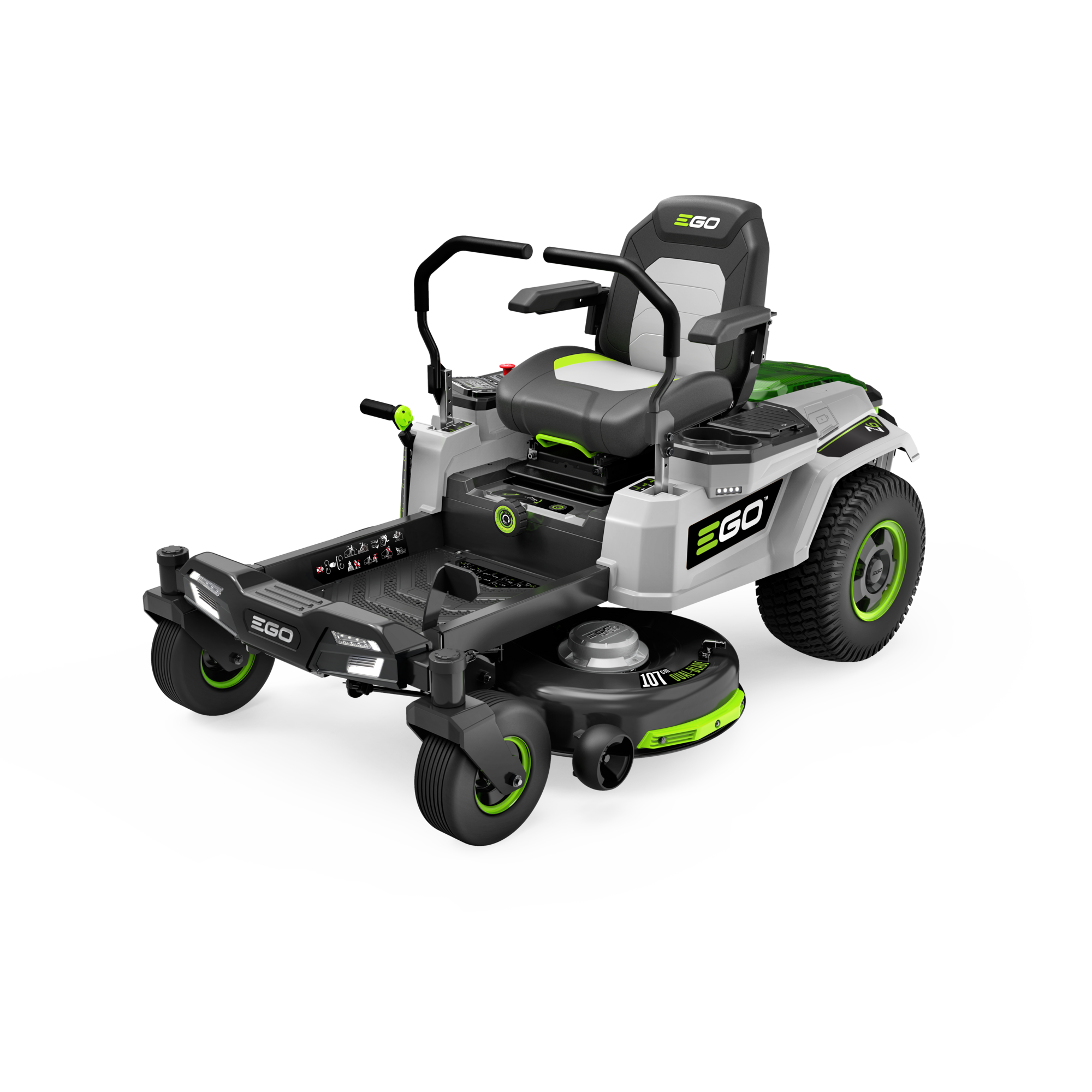 Model EGO Z6 - je prvním modelem Aku rideru na trhu s nulovým poloměrem zatáčení a záběrem sekání 107cm. Síla od spolehlivých a výkonných elektromotorů je na pojezdová zadní kola předávána a plynule dávkována prostřednictvím variabilního elektropojezdu. Pro napájení téhle mašiny slouží až 6 ks EGO Power+ 56V ARC Lithiových baterií „portálové“ konstrukce.