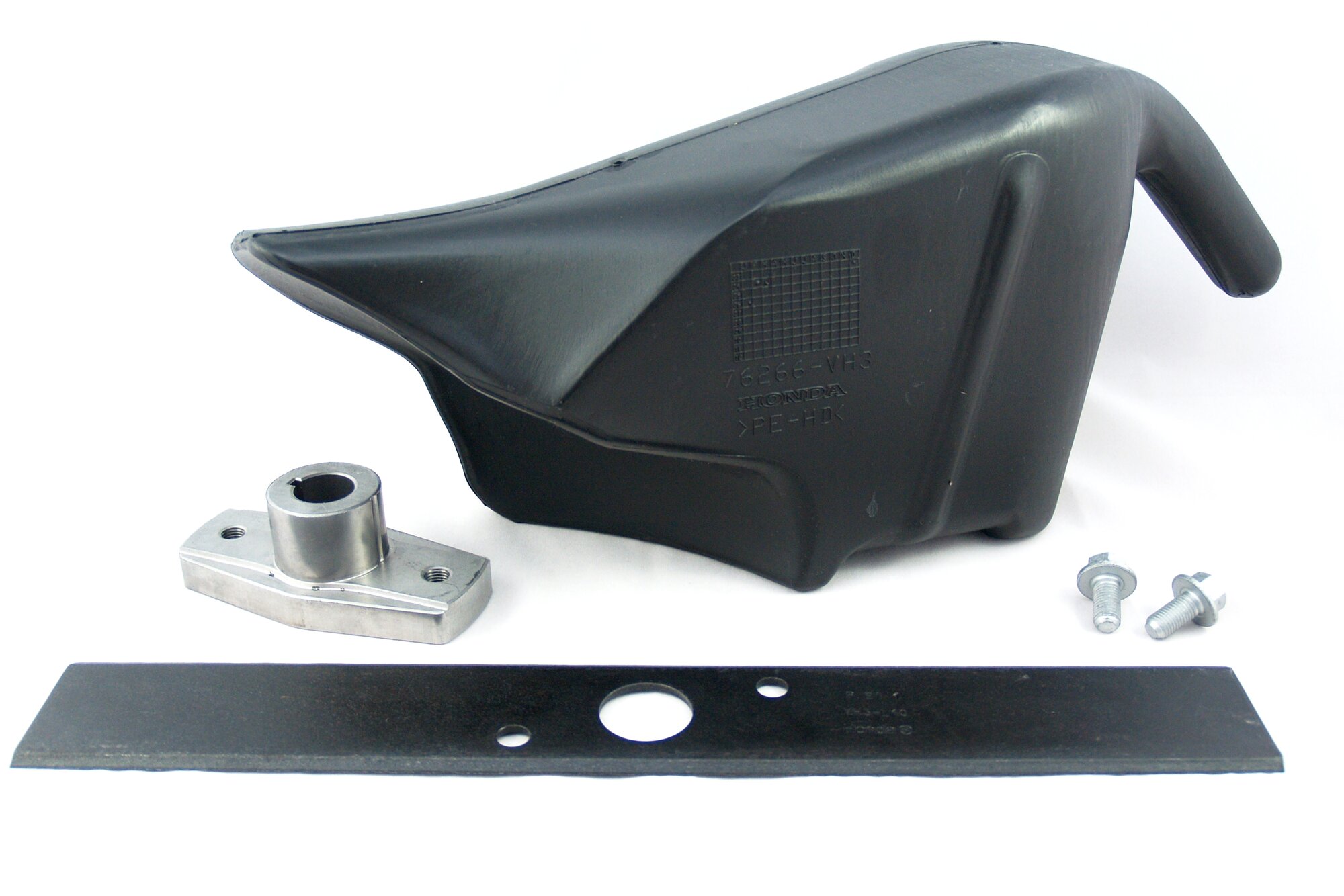Mulčovací sada pro dodatečnou montáž na sekačku Honda HRG 416 SK. Pro montáž je nutné vyměnit unašeč nožů, montážní šrouby a podložky. Při montáži je nutné, aby mulčovací nůž (rovný) byl přímo na unašeči mezi sekacím nožem (s lopatkami) a unašečem. Sekací nůž je při sekání blíže k povrchu země. Pro uzavření komínku výhozu trávy použijte uzavírací klín.