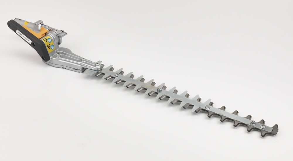 Pro zarovnávání a zastřihování živých plotů je k dispozici nástavec s nůžkami na živý plot. V tomto případě se jedná o samostatný nástroj. Díky originálnímu systému naklápění, lze jednoduše změnit pracovní úhel lišty, dlouhé 55 cm. Stroj je tak velmi obraný a práce s ním velmi jednoduchá. Břity tohoto nástroje jsou samoostřící a jsou chráněné proti vylomení.
