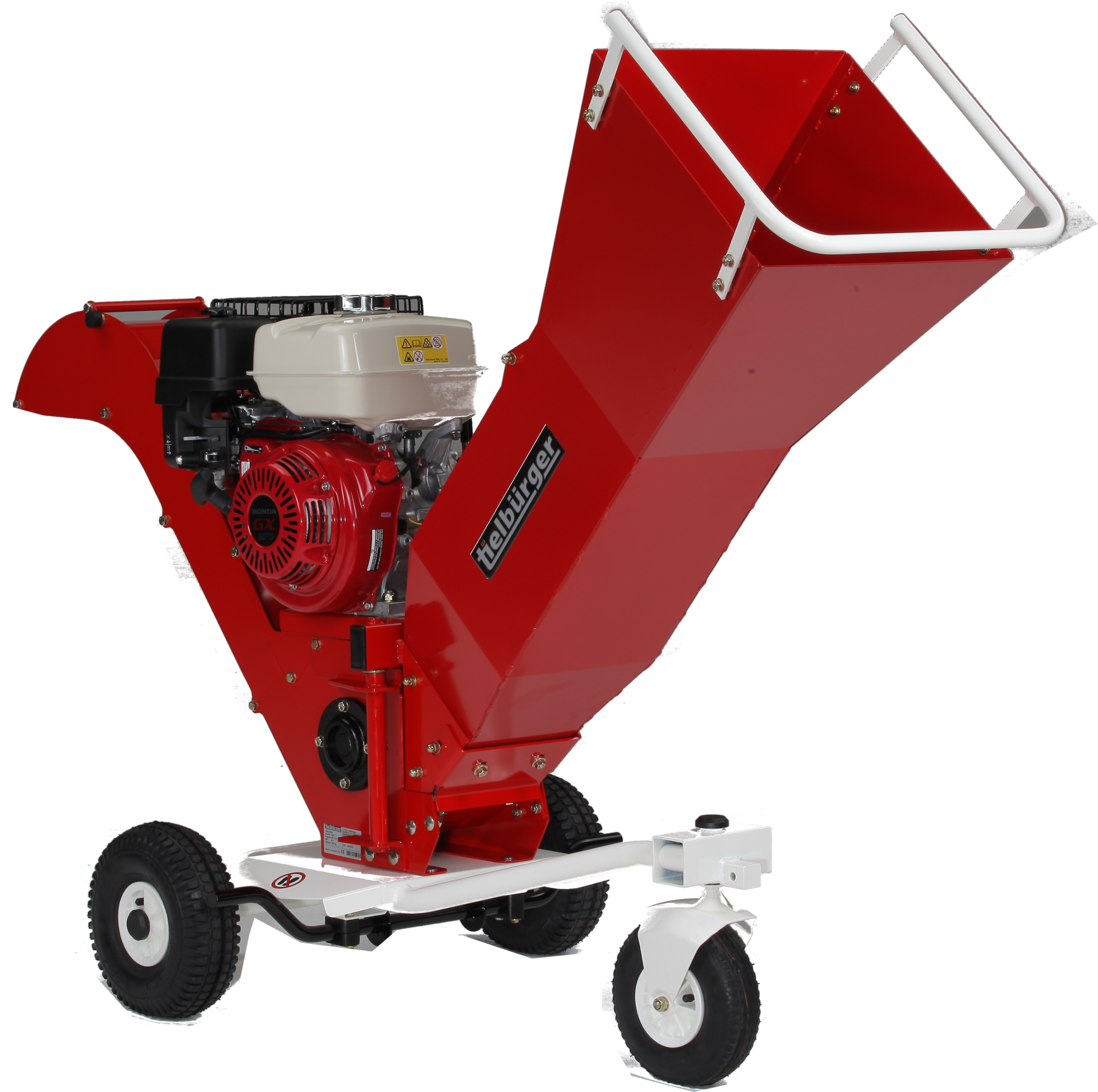 TH 80: profesionální model motorového štěpkovače střední výkonové třídy, poháněného výkonným a spolehlivým profesionálním motorem, vlastním manipulačním podvozkem a dvounonožovým válcovým drtičem dřevěného odpadu.
